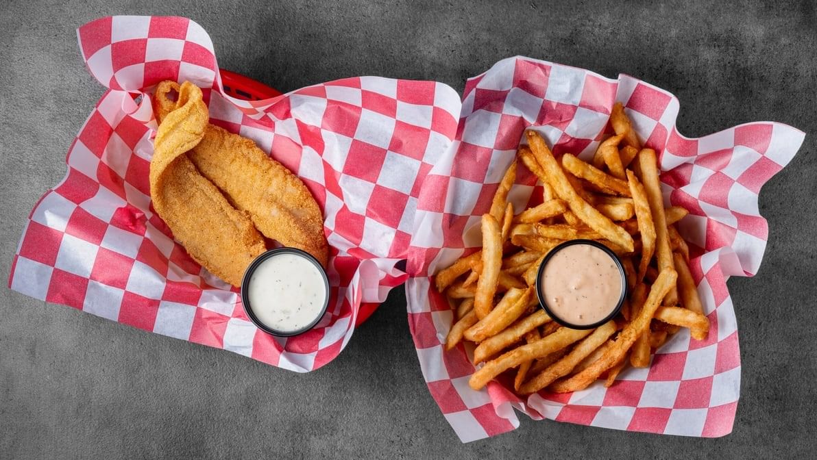 Golden battered fish fillets with crispy fries. Choice of 2, 3, or 4 pieces.
