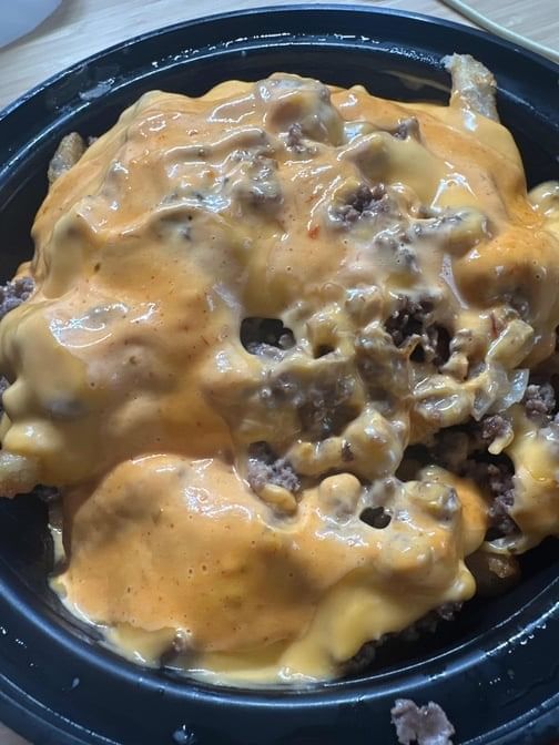 French fries, chopped beef, chopped onions, cheese, & choice of spicy or regular house sauce.